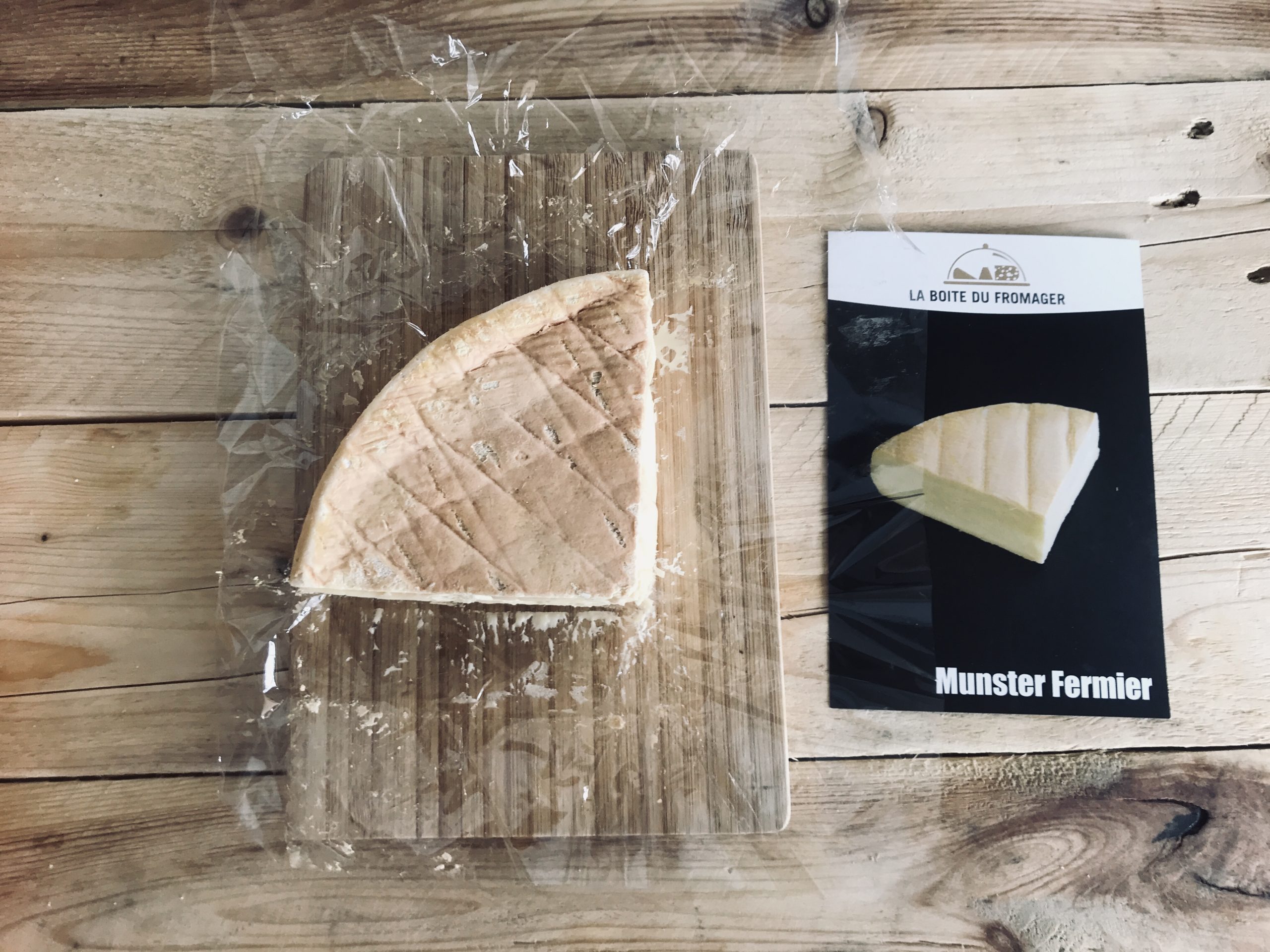 Celui-là, on l’a ADORÉ ! Si vous n’avez jamais goûté de munster, vous passez à côté d’une expérience odorante mémorable. L’odeur de ce fromage au lait cru est d’ailleurs réputée pour être plus intense que son goût. La Boîte du Fromager a prévu le coup et ce fromage a fait l’objet d’un double emballage (merci!). Il faut éviter de le consommer avec du vin rouge ; dans l’idéal, préférez les vendanges tardives ou une bière.
