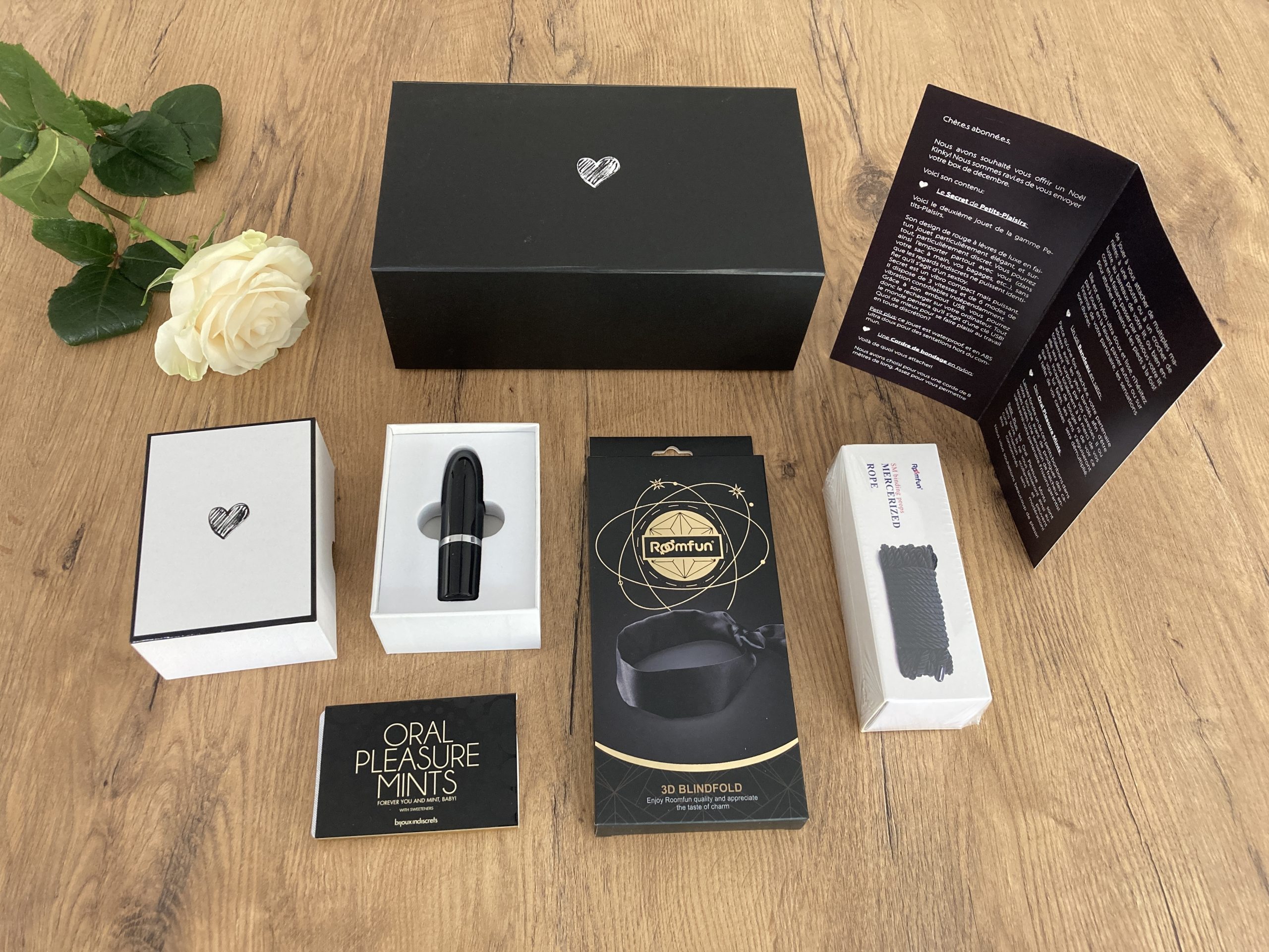 Dans cette édition de Petits Plaisirs on découvre des objets aux allures sages, alliant douceur et sobriété. Mais derrière la part de mystère se cachent des accessoires qui ne manquent franchement pas d’agiter les corps et les esprits. Si vous avez un peu d’audace et beaucoup d’imagination, elle est probablement l’édition parfaite pour vous. Au total, 100€ de produits réunis dans cette box. On vous dévoile son contenu.